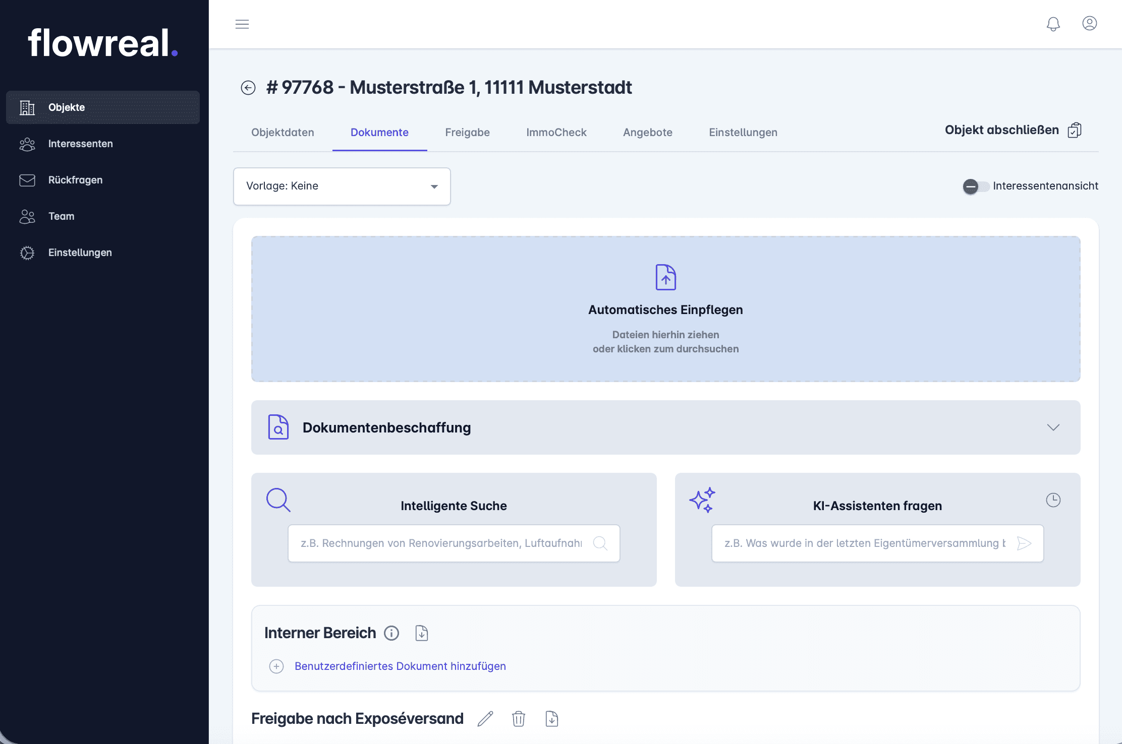 Automatische, KI-gestützte Schwärzung sensibler personenbezogener Daten in den Dokumenten (z.B. Namen anderer Eigentümer oder Mieter) ohne manuelle Nachbearbeitung.